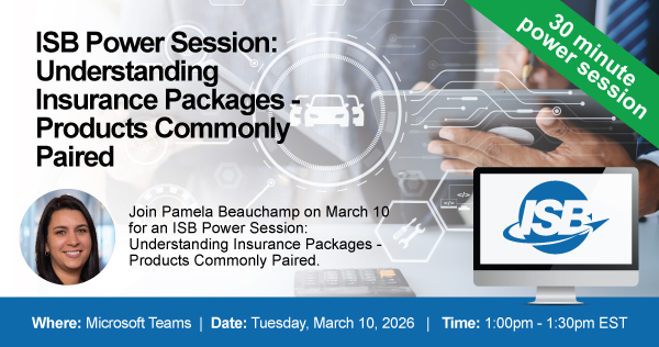 ISB Power Session: Understanding Insurance Packages - Products Commonly Paired Microsoft Teams Tuesday, March 10, 2026 1:00 PM - 1:30 PM EST Register >